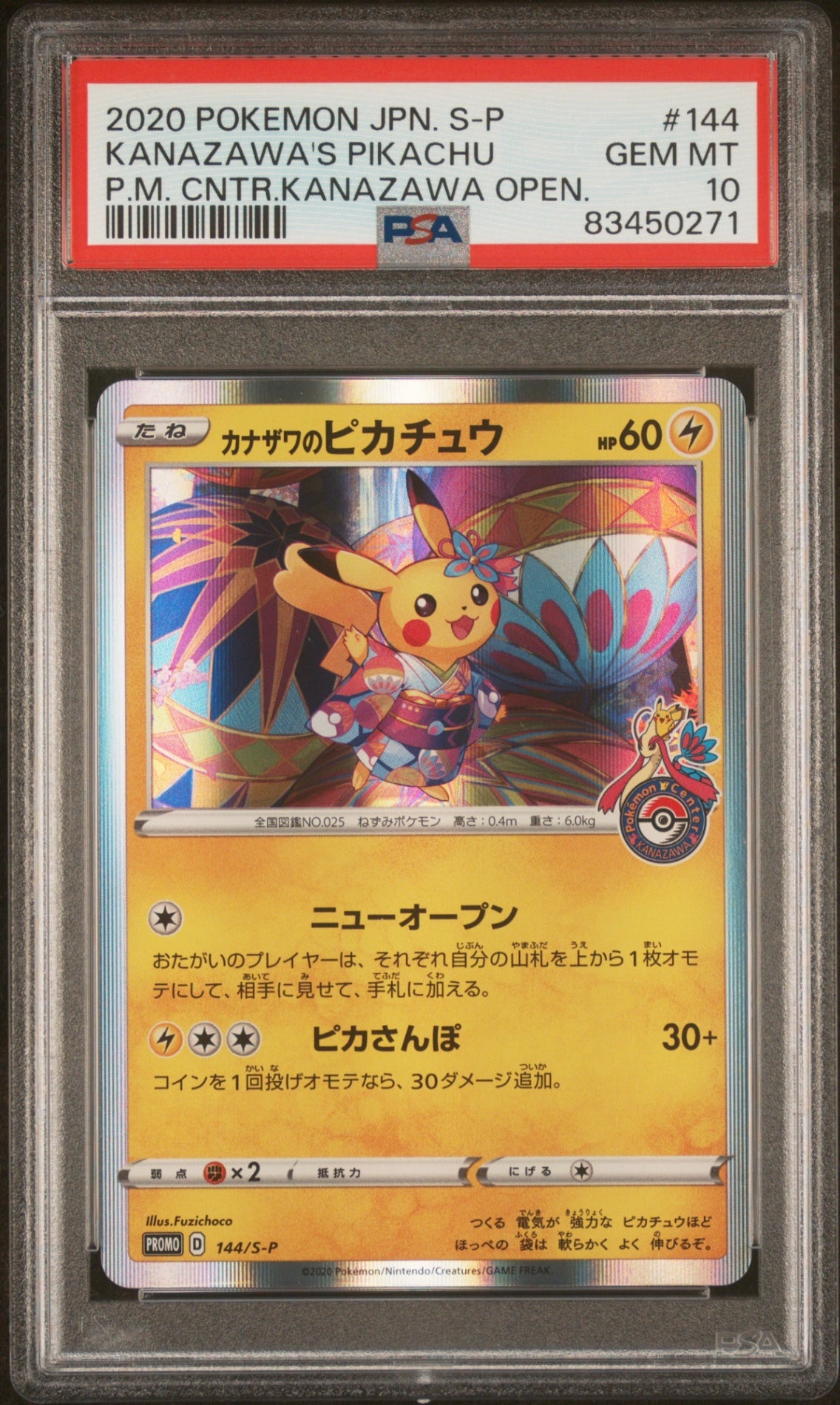 Elevate your Pokémon collection with the PSA10 PSA10【POKEMON 144/S-P】KANAZAWA`S PIKACHU Pokemon Center【PROMO】. This exquisite card, graded a perfect 10 by PSA (Professional Sports Authenticator), is a must-have for serious collectors and Pokémon enthusiasts alike.